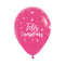 GLOBO LATEX REDONDO 2 CARAS FELIZ CUMPLEAÑOS CEBRA FASHION FUCSIA