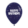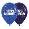 GLOBO LATEX REDONDO INFINITY® HAPPY BIRTHDAY AZUL GALAXY FASHION SURTIDO